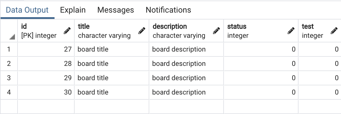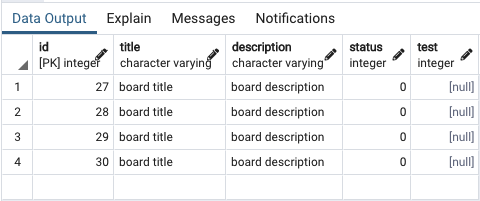 샘플로 넣어둔 데이터에는 test column 값이 존재하지 않기 때문에 발생하는 오류였습니다.